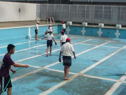 毎年、プール開き前の大掃除に6年生が頑張ります。