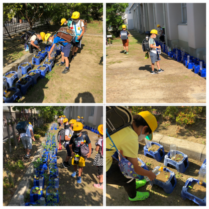 朝は鉢に水をあげる子どもたちで賑わっています。
