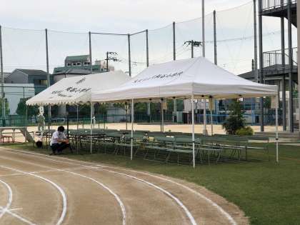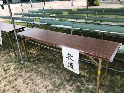運動会に向けて最後の準備をし、子ども達の登校を待ちます。