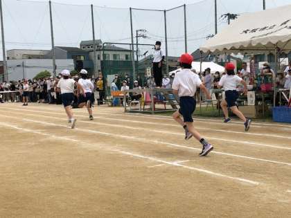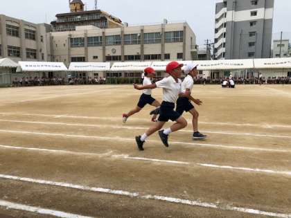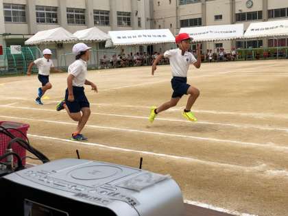 4年生個人走「走れ!」です。ゴールまで力一杯走り抜けます。