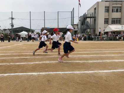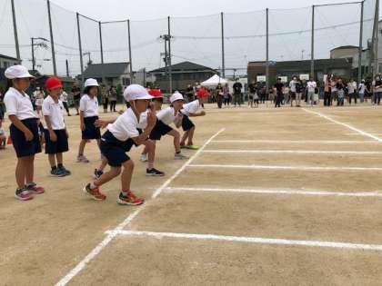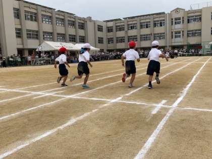 1年生の個人走「よ〜い どん??」です。小学校ではじめての個人走。力一杯走りました。