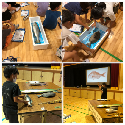 本物そっくりの魚の模型を、よく食べられる魚と低利用魚に分けて、低利用魚の活用の仕方を教えていただきました。