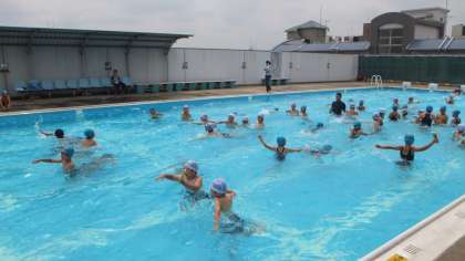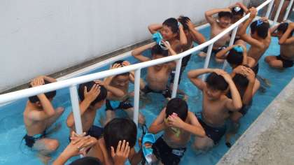 気温が29度、水温が26度でしたので、3・4年生が2時間目の時間にプール開きを行いました。