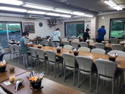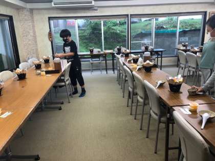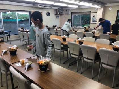 もうすぐ夕食です。食事係が準備してくれています。