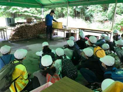 次の活動はカレーライスづくりです。スタッフの方から説明を聞きます。