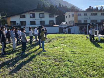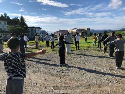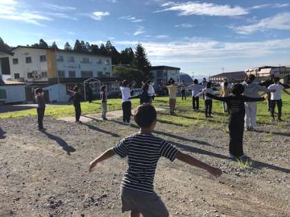 朝の集いですです。気持ちよく体操をします。