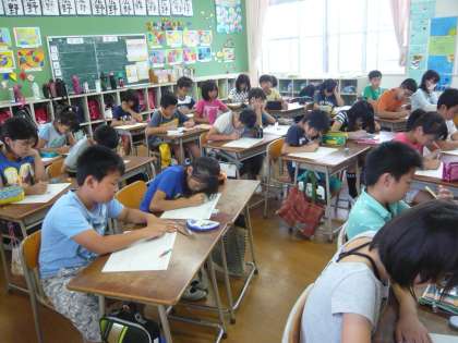 3階の高学年の教室(5年1組、6年1組、6年2組)の子どもたちの様子です。