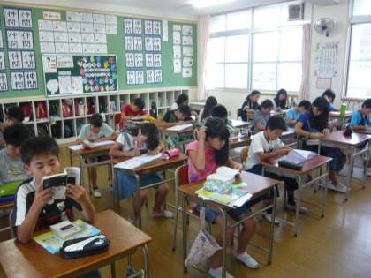 担任がいない教室も、各自で静かにするべきことに集中していました。