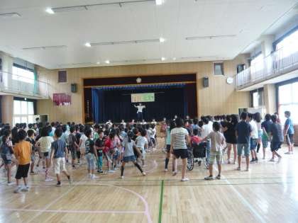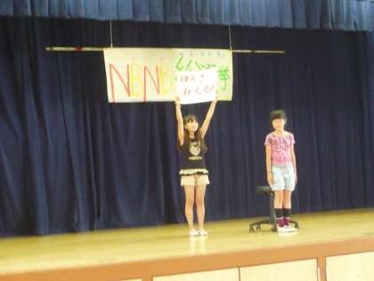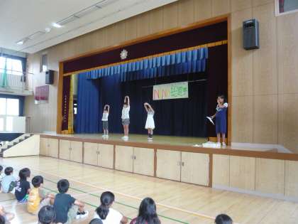 続いて、2学期からのノビノビたいそうを決めるために4・5・6年生の健康委員がそれぞれに考えたノビノビたいそうの発表です。