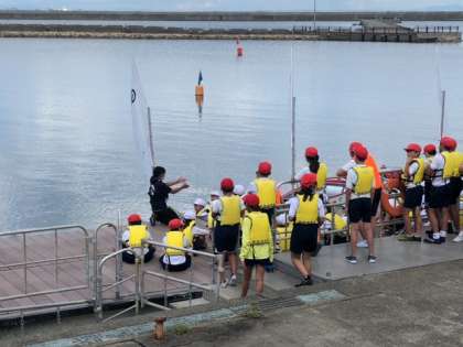 実際のヨットを使って、乗り込み方や操作方法を教えてもらいます。