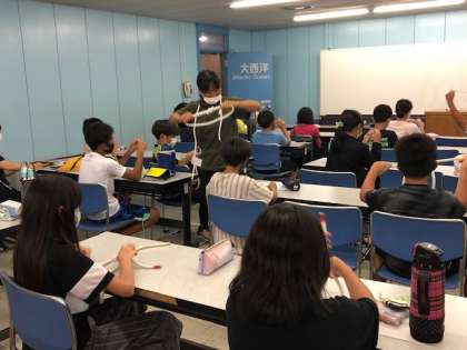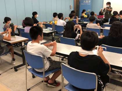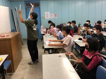 夜の活動です。まず初めは「ロープワーク」。いろいろな結び方を、スタッフの方に教えていただきます。