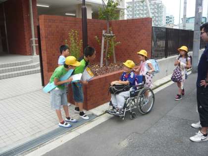 今朝は、門のところまで出て、登校してくる児童を迎えていました。