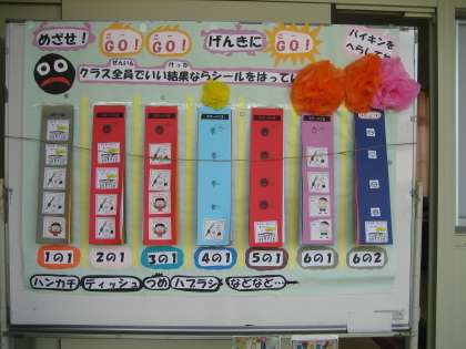 姿勢、ノビノビ体操、クイズなどの結果から、健康で元気なクラスに