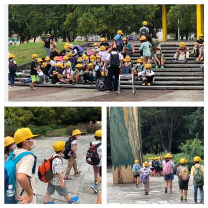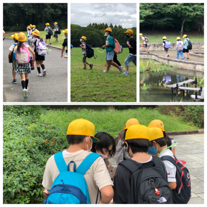 3・4年生が大泉緑地に遠足に行きました。最初はたてわり班でオリエンテーリングです。「大芝生広場」や池の前の「中央休憩所」など先生のいるポイントを探して歩いたり、途中のクイズなどにも挑戦したりしながら広い公園を回りました。どの班も協力しながらポイントを回り、決められた時間にゴールすることができました。