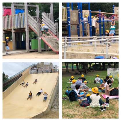 楽しみにしていたお弁当の後は、「冒険ランド」にある遊具で思い切り遊びました。大きな滑り台やアスレチックの遊具を時間いっぱい楽しみました。