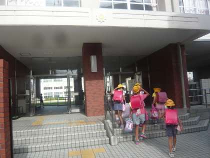 子どもたちの下校時刻は、低学年が13時30分頃。高学年が14時30分頃です。