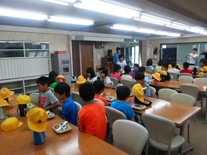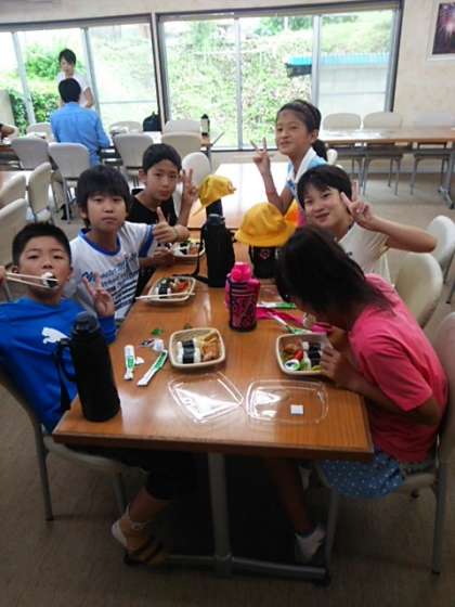 雨はあがっていますが、宿舎の食堂でお弁当をいただきます。
