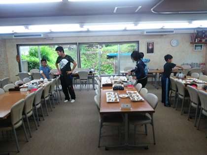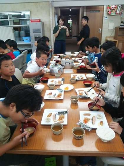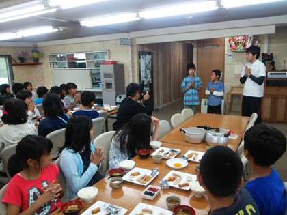 今朝も、子どもたちは元気で食欲が旺盛です。食事係も、みんなのために頑張っています。