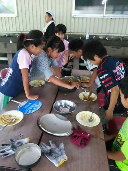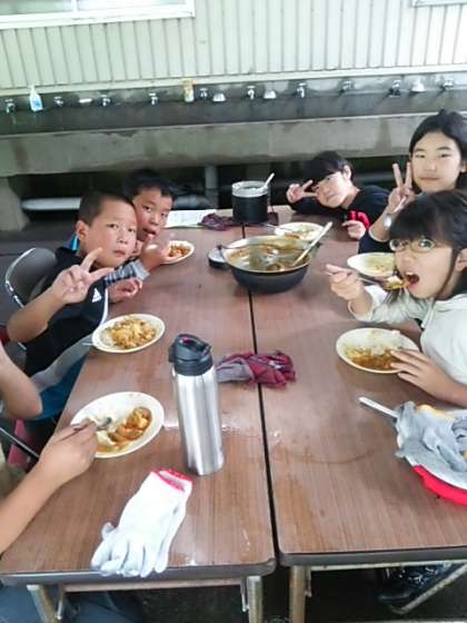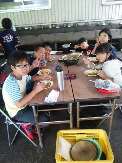 カレーができた活動班ごとに、いただきます。どの班もとびきりのカレーライスだったようです。