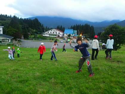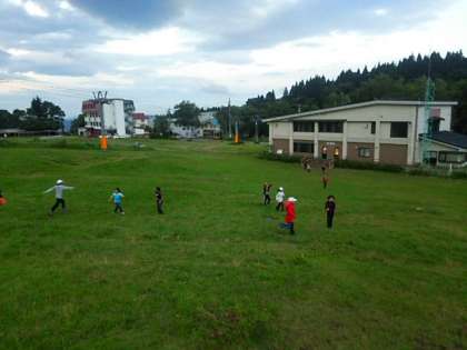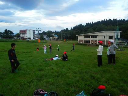 月は見えていますが、星は残念ながら見えません。そこで、星の観察をやめて19:00からナイトバイキングを行うことになりました。出発時は明るかったのですが、どんどん暗くなってきます。途中の高原では、ショートタイムの自由遊びも楽しみました。風が心地よかったです。