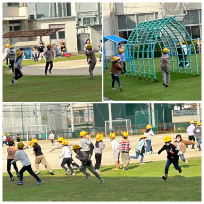 しばらく冬芝の養生で使用できなかった芝生ですが、今日から使用できるようになりました。早速、子ども達は運動場に飛び出し、冬芝が青々と茂った気持ちのよい芝生で思い切り遊んでいました。