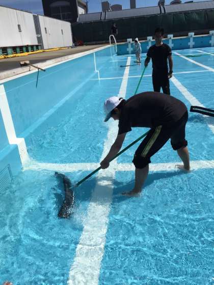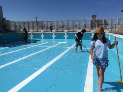 PTA地域プール開放後にプール掃除をしていただきました。とてもきれいになりました。ありがとうございました。