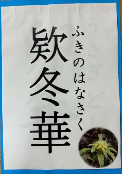 冷たい雨の朝を迎えました。今日の児童朝会では、学校長から「大寒」の講話がありました。一年間で一番寒い時期にとなる「大寒」ですが、最初の5日間は「ふきのはなさく」と呼ばれています。凍てついた地面にふきの花が咲き始める頃。地面には雪が積もり、強い寒さが襲ってくる時期ですが、草花は春に向けて着実に動き出しているということを表した言葉です。