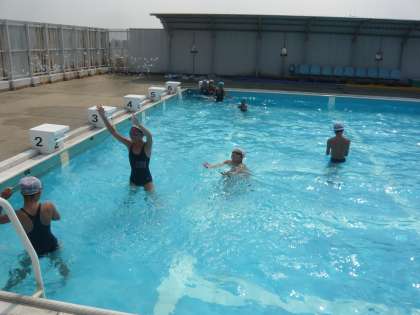 高学年のプール開放は、本日午後からの校内水泳記録会に参加する子どもが来ないせいか、プールがいつもよりも広く感じます。