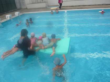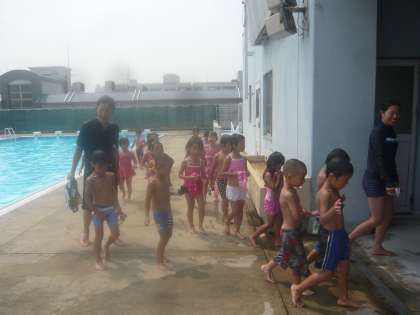 深いところも平気な子どもたち。バタ足でしっかりと泳ぐ子どももいます。