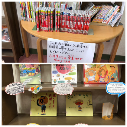 新しく入ったシリーズ本や読売KODOMO新聞もあり、子どもたちは目を輝かせながら様々な本を手に取っていました。