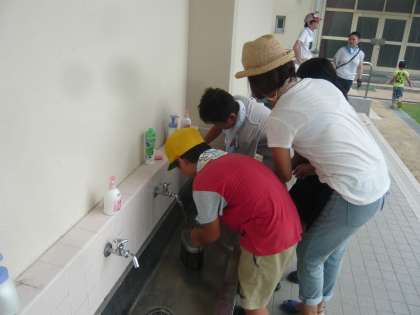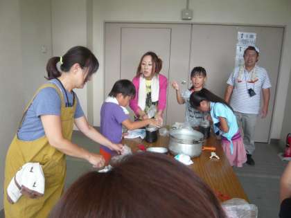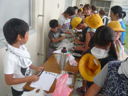 雷が近くに落ちていますが、校舎内でカレーライス作りを進めています。