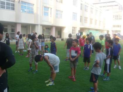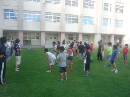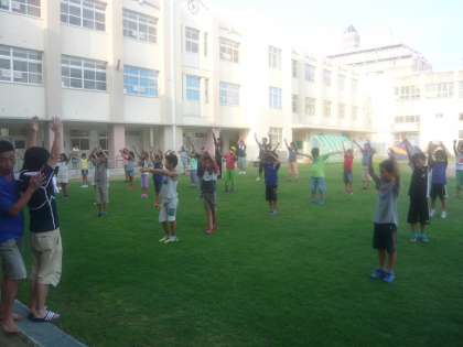 まだ、眠り足りない子どももいるようですが、ラジオ体操で心と体を起こしています。