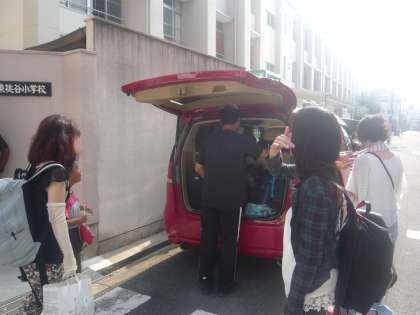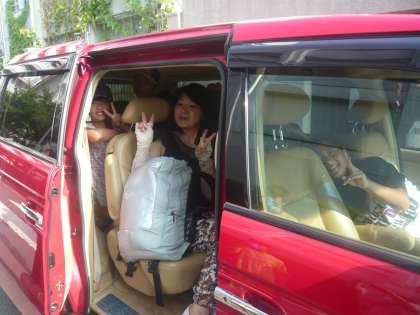 キャンプ村から民族キャンプに参加する児童・教職員をバス待ち合わせ場所まで送っていただきました。