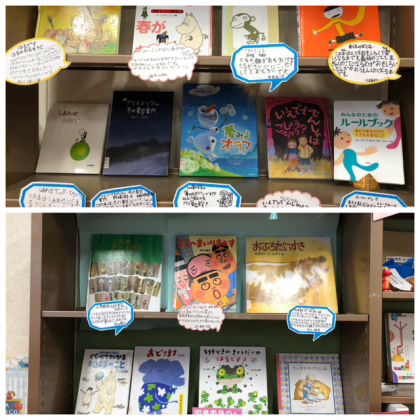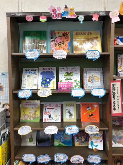 委員会児童がおすすめの本を選び、紹介しています。今回は春をテーマにした本が多く取り上げられていました。