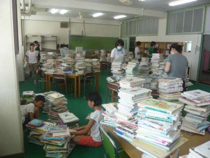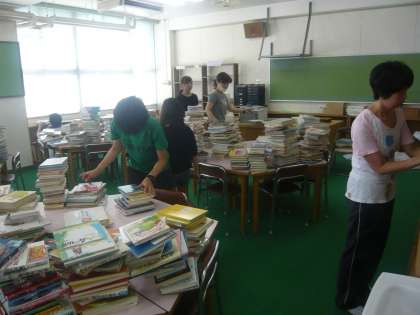 本、書架、机、いすなど、図書室内の備品等すべて外へ出していたのですが、大掃除をしてから出していた物を戻し、本の選別、整理作業を行うことになりました。