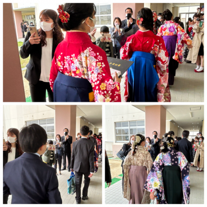 卒業生との名残は尽きませんが、保護者の皆様や教職員に見守られ、とびきりの笑顔で巣立っていきました。