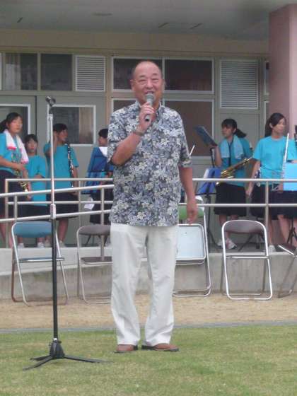 お囃子で雰囲気が盛り上がり、続いて坂井芝生実行委員長、金田PTA会長の挨拶がありました。