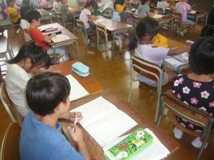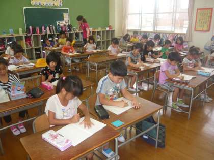 2年生は、2けたのたし算にチャレンジし、答え合わせが始まっていました。