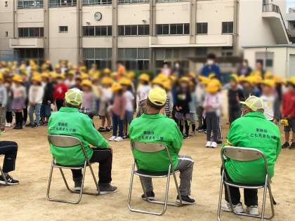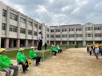 本日、本校の子どもたちの登校を地域から見守り続けていただいている、「東桃谷連合地区こども見守り隊」の方々と児童との顔合わせの会がありました。本校にも注意をしながら登校しなければならない箇所がたくさんあります。そのような場所に毎朝、子どもたちが、安心して登校できるように立っていただいています。本当に感謝いたします。また、生野警察の署員の方に、安全に生活できるために、貴重なお話をしていただきました。子どもたちは、感謝の気持ちをもって集中して話を聞いていました。