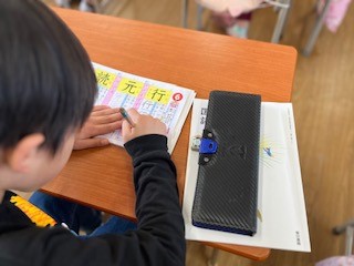 今日は、「行」という新出漢字を覚えました。書き順を体を使って覚えます。これからたくさんの漢字を勉強していきます。