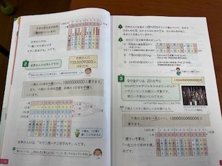 4年生になって、これまで習った大きい数よりさらに大きい数について学習しています。「億」の位の数の構成、読み方、書き方など、しっかり大切なことを押さえて学んでいきます。