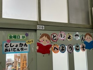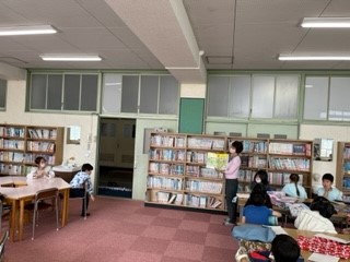 本校では、毎週金曜日に、学校司書の方に来ていただき、1日図書館を開放しています。休み時間には、自由に読書ができます。また、学年で図書室を利用するときに、司書の方の本の読み聞かせもあります。「図書館1日あいてんDAY]で、読書の楽しみを味わってほしいと思います。