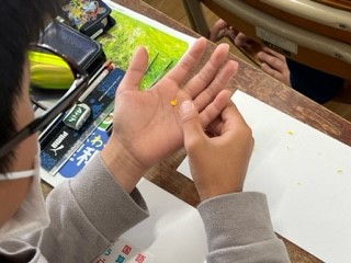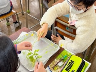 5年生では、「花のつくり」について学習しています。今日は、ピンセットでがくや花びらを外しながら花のつくりを観察しました。しっかり観察ができたかな?みんな一生懸命に取り組んでいました。