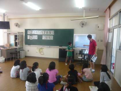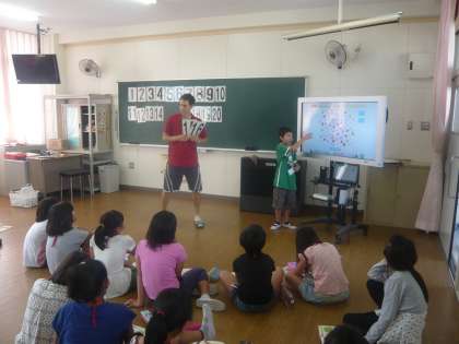 いろいろな物の数をたずねたり、10以上の数の数え方をブレットさんから教わっていました。