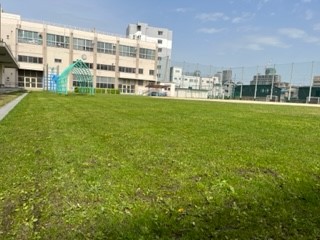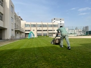 本日も、運動場の芝生の芝刈りをしていただきました。とてもきれいな仕上がり具合です。