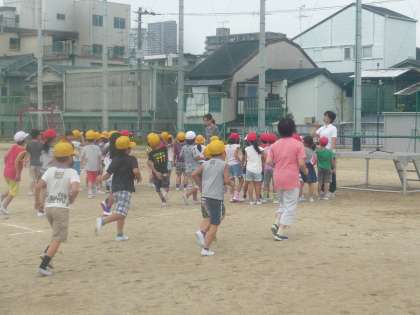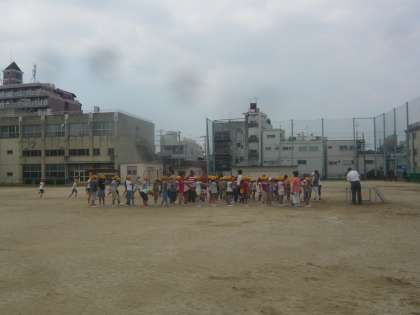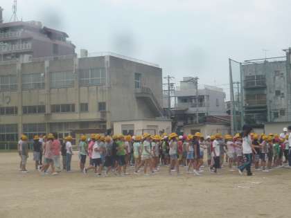 第一次避難場所で集まった学級から整列をして人数確認です。