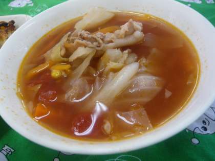 酸味の効いたトマトスープとともに食べると、豊かな味わいが口の中に広がってとてもおいしくいただきました。