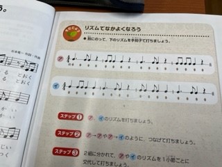 リズムを手拍子で打つ学習の様子です。今日も元気で楽しそうな歌声が響いていました。