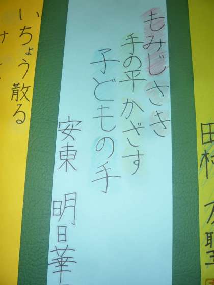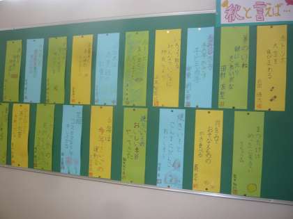 階段の掲示スペースに6年生の俳句が掲示されていました。