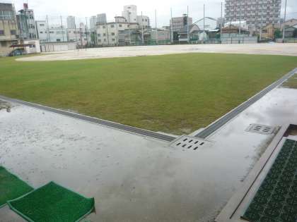 今年は例年に比べて雨が多く、運動場の乾く間もない状態が続いています。